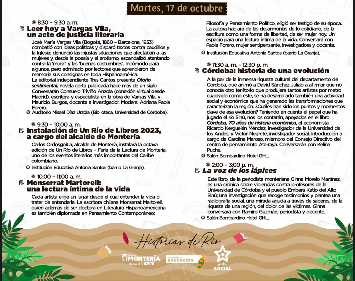 Ya todo está listo para que el martes 17 de octubre comience una nueva edición de ‘Un río de libros’, la cual este año llega con un montón de sorpresas para los participantes, entre ellos novedosos y excelentísimos invitados especiales.