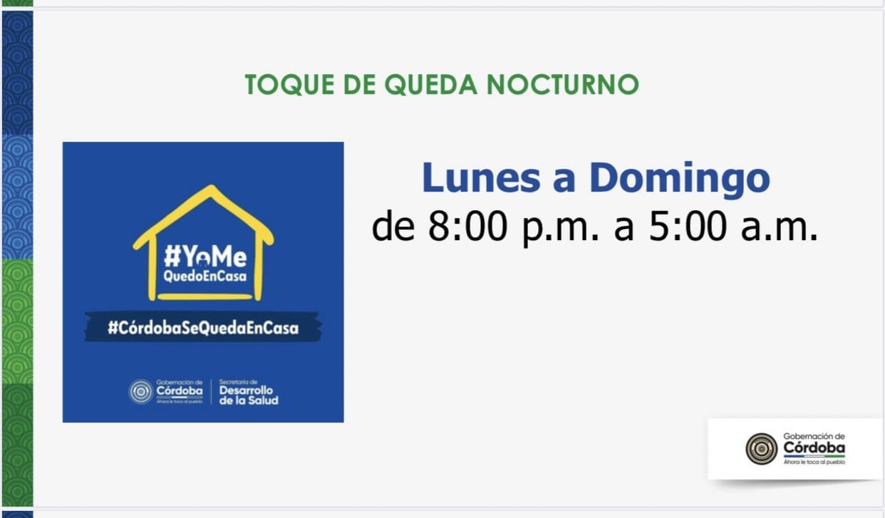 En el decreto 385/2020 se manifiesta que se mantendrá el toque de queda nocturno todos los días de lunes a domingo desde las 8 pm hasta las 5 am. Esta medida rige hasta la media noche del 30 de septiembre del presente año.