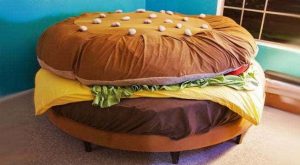 La comida basura es una de las grandes obsesiones de nuestra civilización, por ello Kayla Kromer creó en los 70 una cama con formad e Hamburguesa.