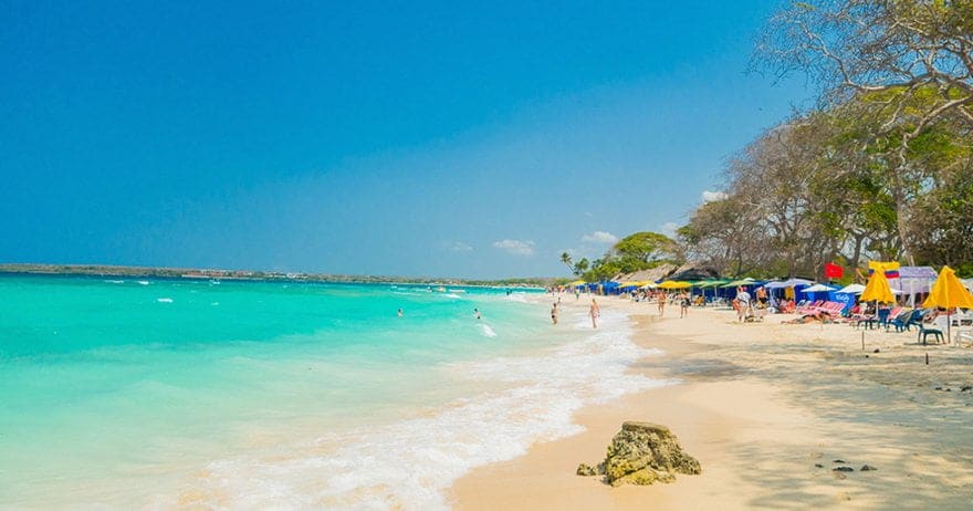 Está a 45 minutos en lancha desde Cartagena es una playa con arena blanca bañada por el mar color turquesa.